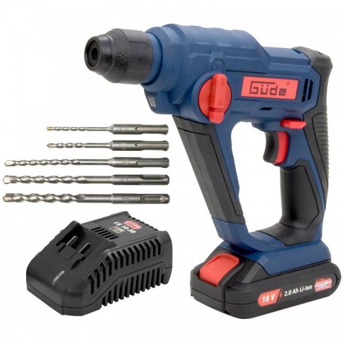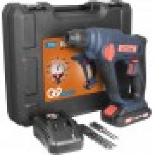 Akumulátorové búracie kladivo zo série akumulátorového náradia 18V E3. Búracie práce (s použitím príklepu) alebo vŕtanie (bez použitia príklepu). Možnosť vypnutia príklepu pri vŕtaní do dreva alebo do kovu. Rýchloupínacie skľučovadlo SDS plus na výmenu vrtákov bez použitia náradia. Regulácia otáčok. Poistka proti preťaženiu. Ľahký a kompaktný dizajn. Pravo/ľavotočivý chod. Integrovaná LED na osvetlenie pracovnej oblasti. Mäkká ergonomicky tvarovaná rukoväť pre bezpečnú prácu. Akumulátor 18V/2,0 Ah s kontrolou jednotlivých článkov a ochranou voči preťaženiu, rýchlonabíjačka 3,0 A, 5 x SDS-plus vrták Ø 4/5/6/8/10 mm, kufrík s kovovými uzávermi.