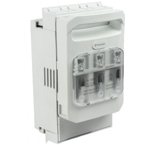 Trojpólový poistkový odpojovač k nožovým poistkám NH00. Montovateľný na montážnu dosku. Dodávaný bez poistiek.
