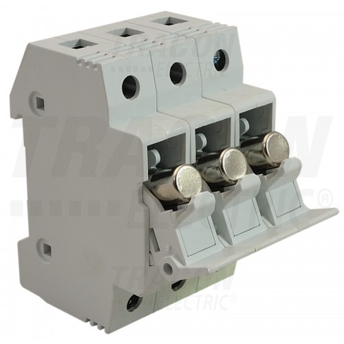 Trojpólový oistkový odpínač k valcovým poistkám 10 x 38. Dodávaný bez poistiek.