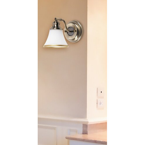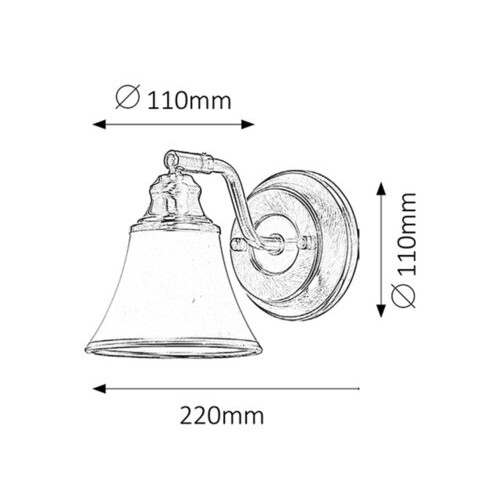 Bodové nástenné svietidlo v klasickom štýle s 1 päticou E14. Má kovové svietidlo mosadznej farby, tienidlo z bieleho a mosadzného opálového skla a krytie IP20. Svietidlo možno použiť aj s úsporným svetelným zdrojom typu R50 s výkonom do 40 W s päticou E14.