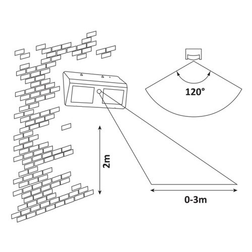 Solárna lampa Ostrava so senzorom pohybu je vyrobená v čiernej farbe s funkčným dizajnom. Plastové vonkajšie svietidlo má zabudovanú LED žiarovku, ktorá vyžaruje prirodzené biele svetlo. Svetelný zdroj má výkon 2,4 W, svetelný tok 225 lúmenov, teplotu farieb 4 000 K a životnosť 5 000 hodín. Ostrava bude skvelou voľbou na terasu alebo do záhrady, ale môžete ho namontovať aj takmer kdekoľvek na vonkajšiu stenu domu. Snímač detekuje pohyb zo vzdialenosti 0-3 metre pri uhle záberu 120°. Rozmery vonkajšieho solárneho svetla sú nasledovné: šírka 190 mm, výška 115 mm, vzdialenosť od steny 45 mm. Ostrava má krytie IP44, ktoré zaručuje, že je chránená proti vniknutiu predmetov s maximálnym priemerom 1 mm, ako aj proti striekajúcej vode z akéhokoľvek smeru.