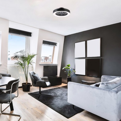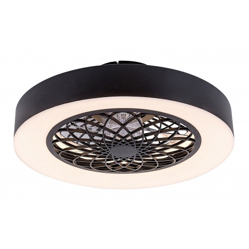 Stropný ventilátor s LED svietidlom ADONIAS v modernom prevedení v čiernej farbe.