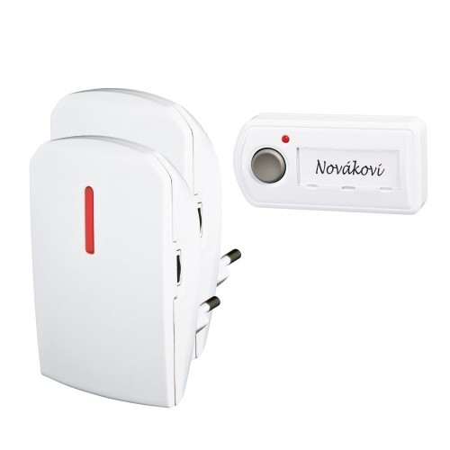 Bezdrôtový zvonček sieťový s reguláciou hlasitosti a so svetelnou signalizáciou. Obsahuje dva prijímače. Batéria 12V pre tlačidlo je súčasťou balenia.